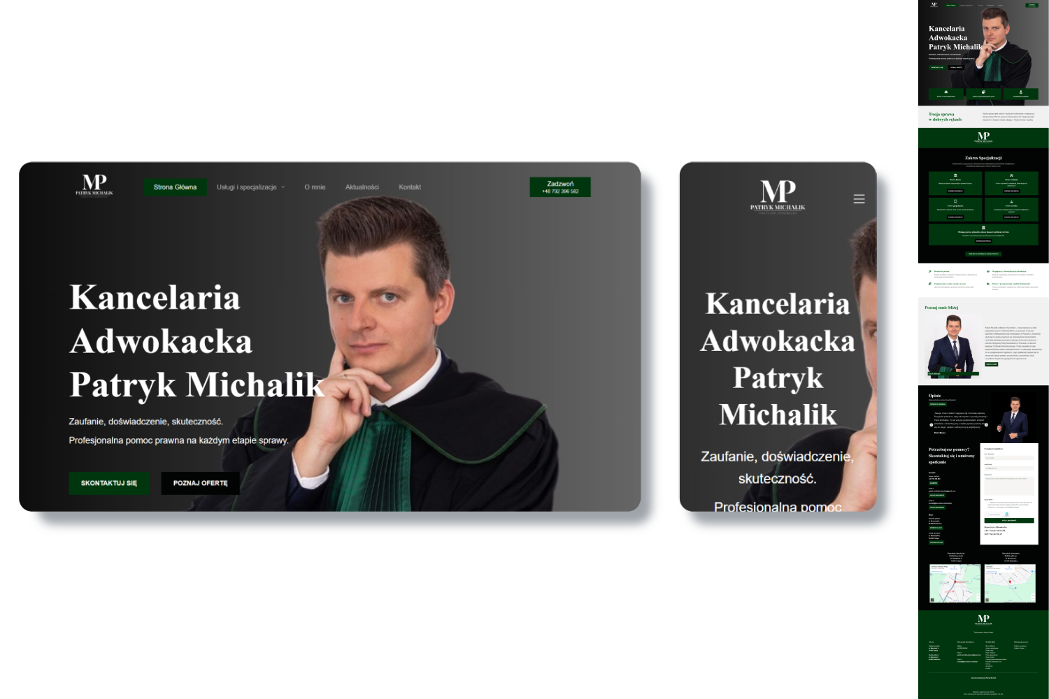 Strona internetowa dla Kancelarii Adwokackiej Patryk Michalik to nowoczesna, funkcjonalna i estetyczna platforma online, która skutecznie realizuje kluczowe cele: prezentuje ofertę kancelarii, buduje wizerunek eksperta, ułatwia kontakt i zapytania klientów. Dzięki temu klient może skoncentrować się na świadczeniu usług prawnych, a użytkownicy — na szybkim i wygodnym znalezieniu pomocy oraz nawiązaniu kontaktu.